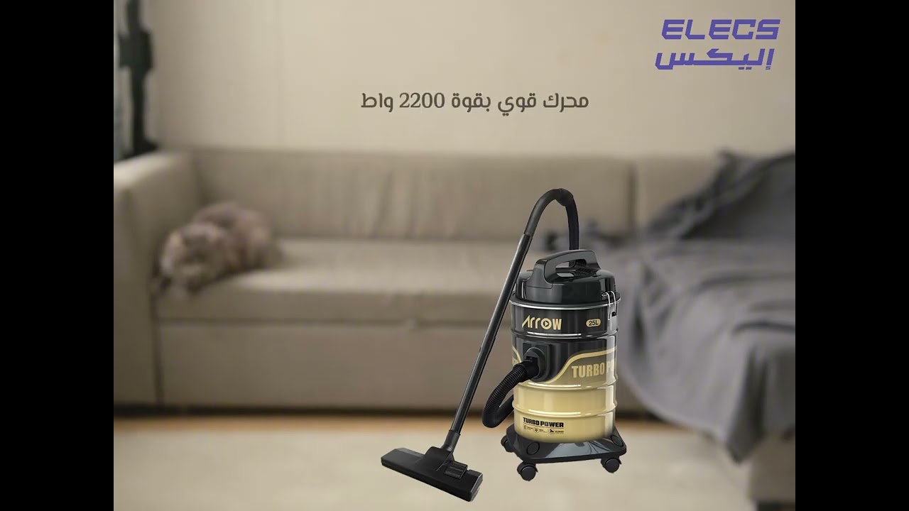 مكنسة أرو كهربائية 25 لتر، 2200 واط، سلك 5 أمتار، تقنية UltraSilent، شفط قوي، سعة كبيرة، وظيفة نفخ، هيكل معدني، مؤشر امتلاء، وحامل ملحقات.